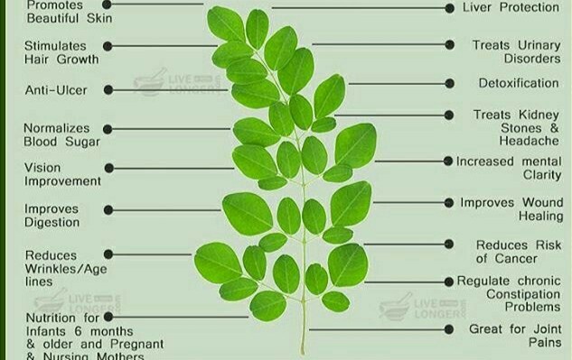 Moringa has many important vitamins and minerals. The leaves have 7 times more vitamin C than oranges and 15 times more potassium than bananas. It also has calcium, protein, iron, and amino acids, which help your body heal and build muscle.