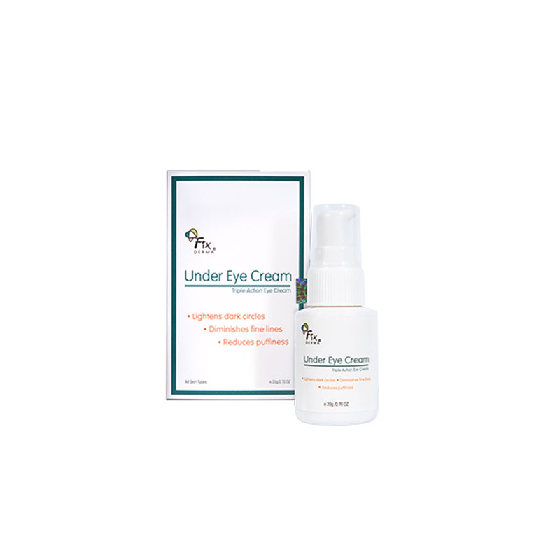 Fixderma Under Eye Cream is a triple action and a unique algae-based skin tightening formula that helps reduce dark circle, puffiness, wrinkles.Fixderma Under Eye Cream de-puffs, nourishes, and tackles dark circles. The ingredients in the formulation work by creating a thin, water-soluble film over the face, which actively lifts and tightens the skin's appearance when appropriately applied.
